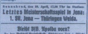 - 10.04. 1.SV Jena : Thüringen Weida 1:2