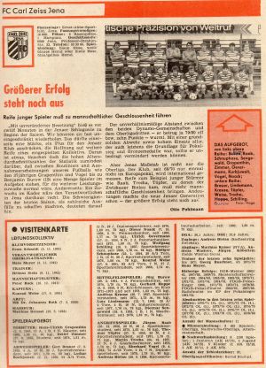 - 02.08.80 FS Aktivist Espenhain : FC Carl Zeiss Jena 0:3 , Tore : Lindemann , Trocha , Raab